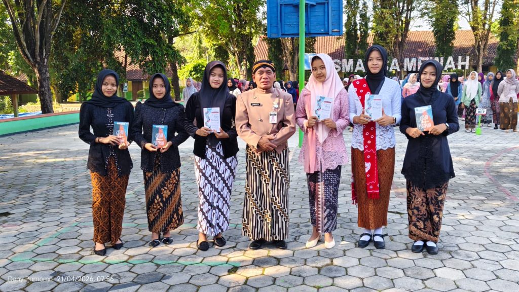 SMA MEWAH-SMAN 1 Purwantoro menggelar upacara peringatan Hari Kartini pada Selasa, 21 April 2026, di halaman sekolah. Kegiatan berlangsung khidmat sekaligus penuh semangat, dengan nuansa istimewa karena seluruh petugas upacara merupakan siswa putri.